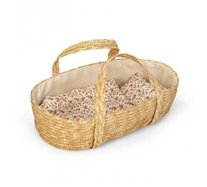 In deze schattige poppenreiswieg neem je je lievelingspop overal mee naartoe. En omdat er een kussentje en dekentje bij zit kan de pop ook nog even lekker slapen. Super leuk om te combineren met één van de poppen met naam.