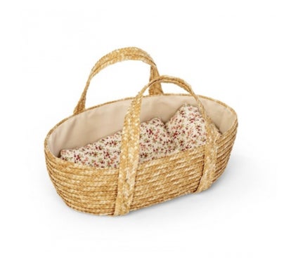In deze schattige poppenreiswieg neem je je lievelingspop overal mee naartoe. En omdat er een kussentje en dekentje bij zit kan de pop ook nog even lekker slapen. Super leuk om te combineren met één van de poppen met naam.