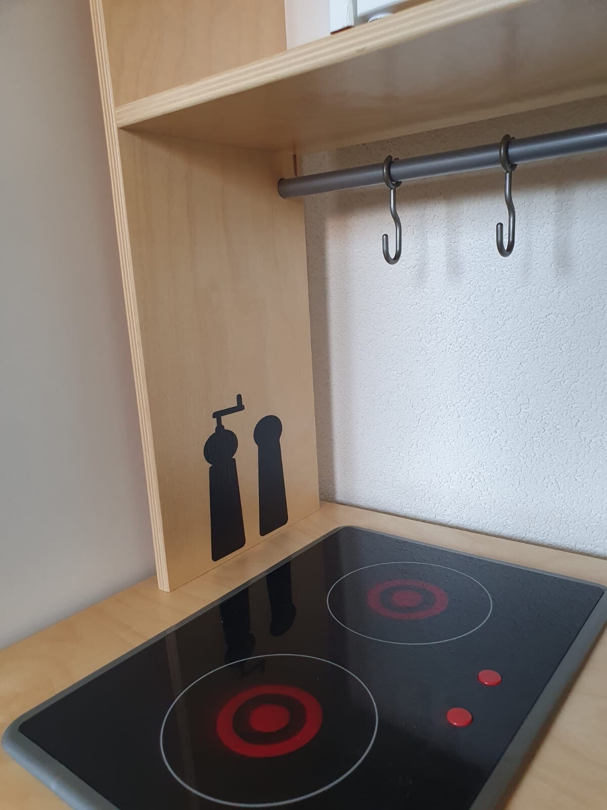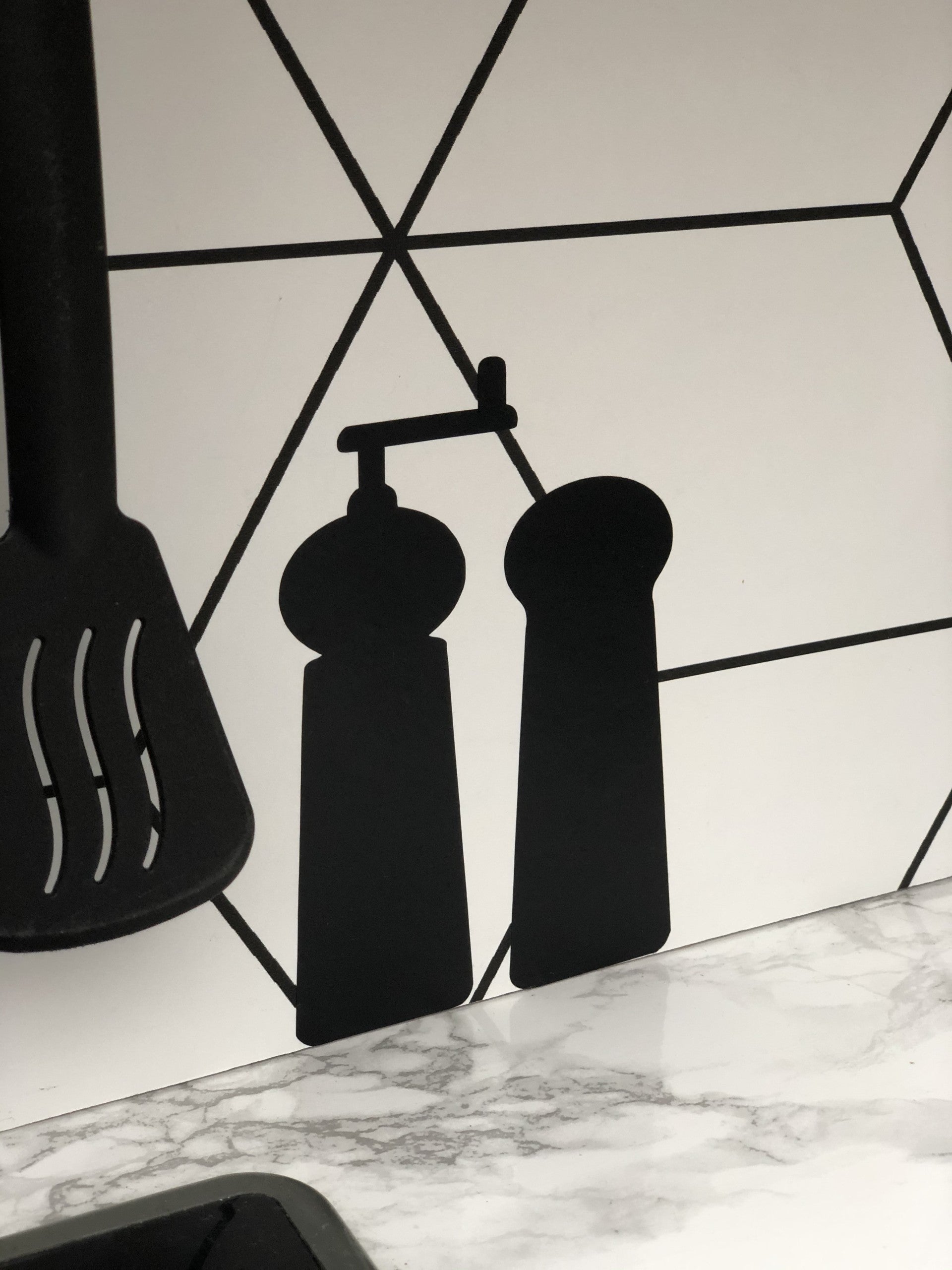 Een leuk peper en zout stelletje om op de (zelf bevestigde) achterwand van het keukentje te plakken!