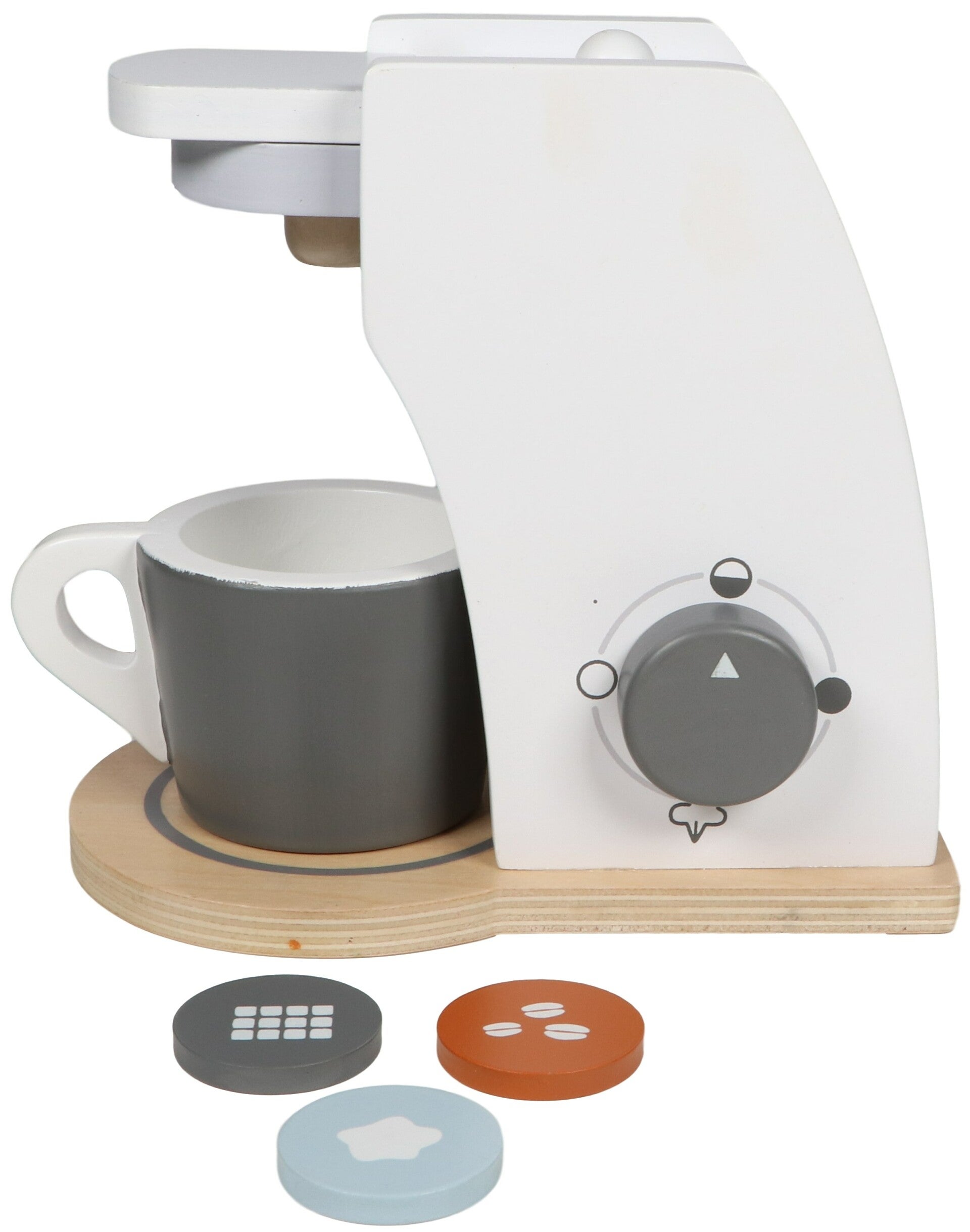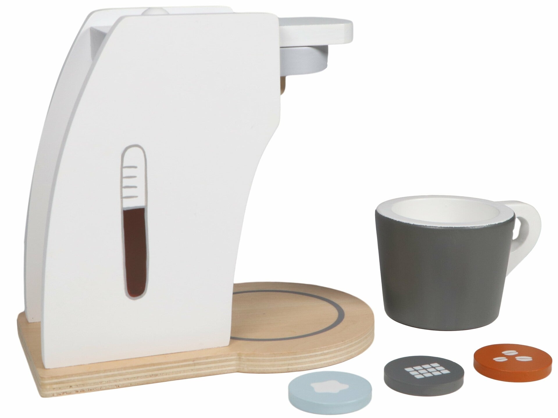 Een lekker kopje koffie maken voor papa of mama? Met dit houten koffiezetapparaat van Tryco zal dit geen probleem meer zijn. Met de draaiknop kun je de sterkte van de koffie bepalen en met het plaatsen van de pads oefent je kindje ook nog eens de motoriek.