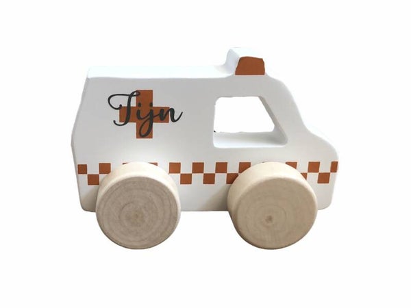 Taaaatuu daar komt de ambulance. Je kindje kan heerlijk het huis door racen met deze leuke houten ambulance van Tryco! De mooie grote houten ambulance speelgoed auto is makkelijk voor kleine handjes vast te houden en stevig van ontwerp dus het kan ook nog tegen een stootje.