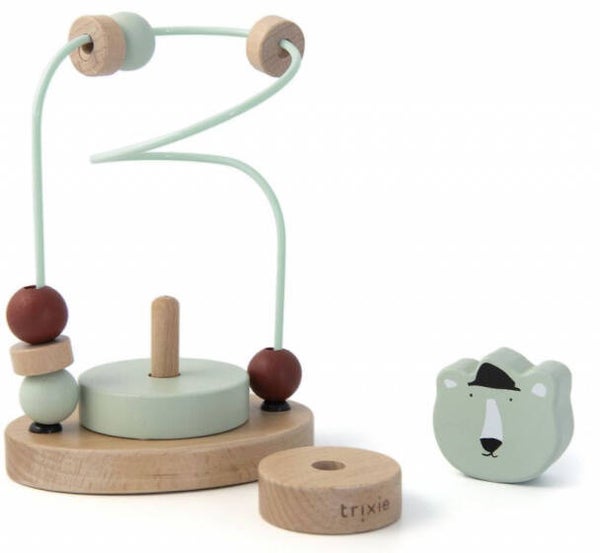 Een klein doolhof met kralen om die fijne motoriek te oefenen! De kralen met verschillende kleuren en vormen glijden langs de het parcours. En wat leuk om de verschillende onderdelen van de ijsbeer in de juiste volgorde te stapelen, totdat je dierenvriend compleet is! Je kleintje zal uren plezier beleven aan dit product om deze vaardigheden onder de knie te krijgen. Super leuk om te voorzien van naam en geboortedatum voor een origineel kraamcadeau. Verkrijgbaar in verschillende dieren.