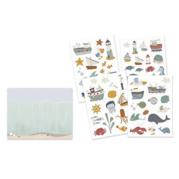 De 4 vellen met meer dan 50 raamstickers vol met bootjes, meeuwen, vissen en zeedieren kun je op tal van manieren gebruiken. De raamstickers zijn eenvoudig te verwijderen en opnieuw te gebruiken voor nieuwe creaties. Leuk, makkelijk en zeer vermakelijk voor je kleintje!