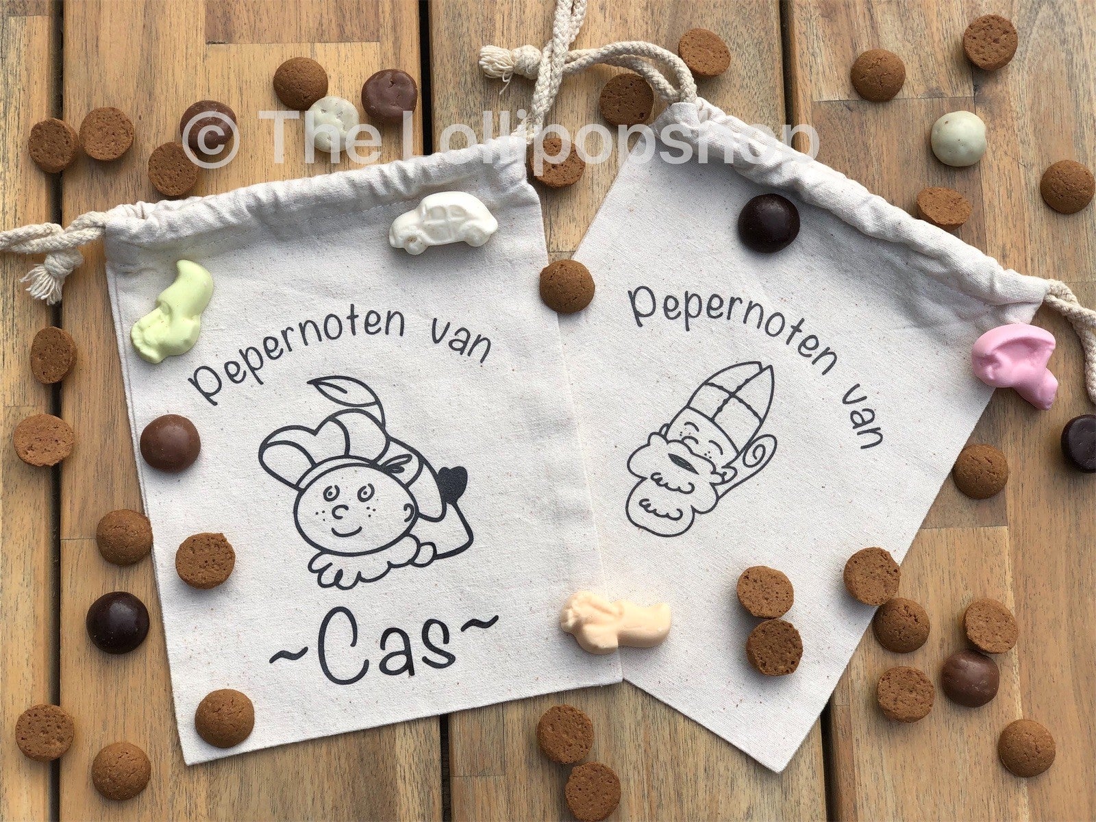 Deze leuke pepernotenzakjes met naam zijn van stevige kwaliteit en gaan jaren mee! Heel leuk voor de intocht van Sinterklaas of voor op school!
